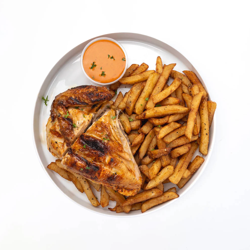 PICK 2 SIDES : FRIES, RICE OR HOUSE SALAD CHOOSE YOUR HEAT: MILD OR HOT