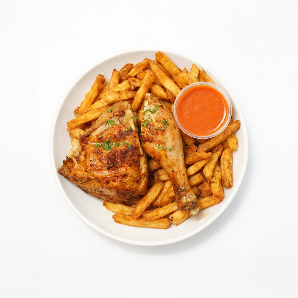 PICK 2 SIDES : FRIES, RICE OR HOUSE SALAD CHOOSE YOUR HEAT: MILD OR HOT