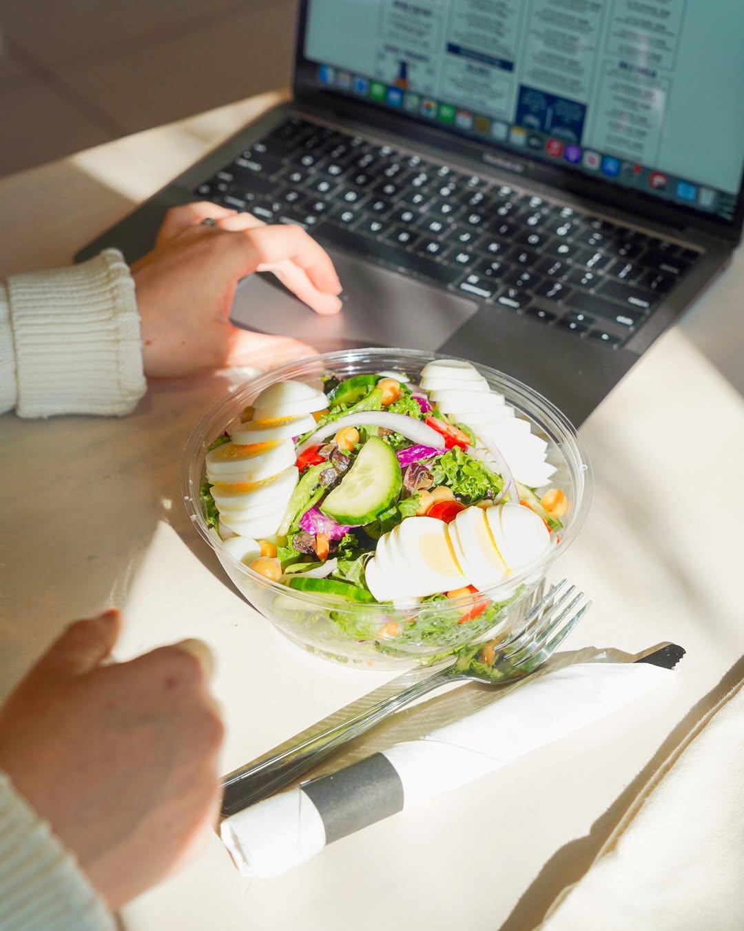 SERVIES AVEZ LAITUE MIXTE, KALE, TOMATES CERISES, OIGNONS, CONCOMBRES, POIS CHICHES ET VINAIGRETTE...