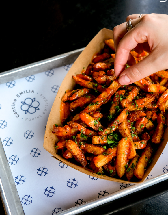Poulet, sandwichs, salades, poutines préparés avec des recettes traditionnelles mais portant un twist local.
